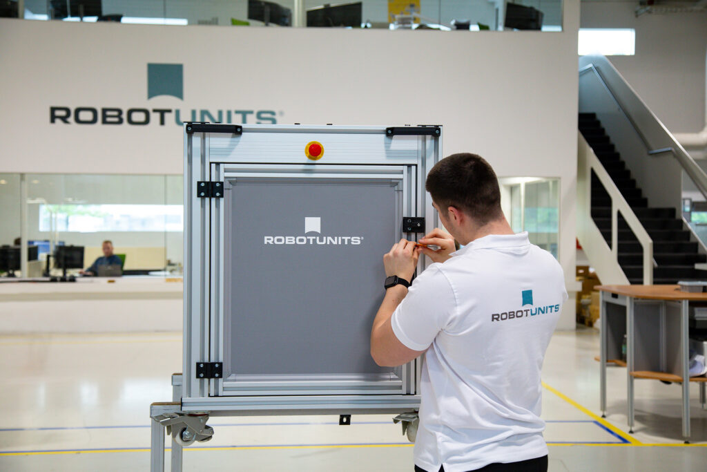 Mit der Cobot-Station lassen sich Maschinenbedienung, Assemblierung, Klebeapplikationen oder einfache Pick & Place Aufgaben schnell in Angriff nehmen. Anwendungsspezifische Bauteile wie Werkstückhalterungen, Sensoren oder Taster lassen sich problemlos an den Profilnuten anbringen. Dank Stauraum für die Steuerungselemente sowie Heberollen mit Feststellfüßen gewährleistet der Unterbau höchste Mobilität für individuelle Einsatzmöglichkeiten.