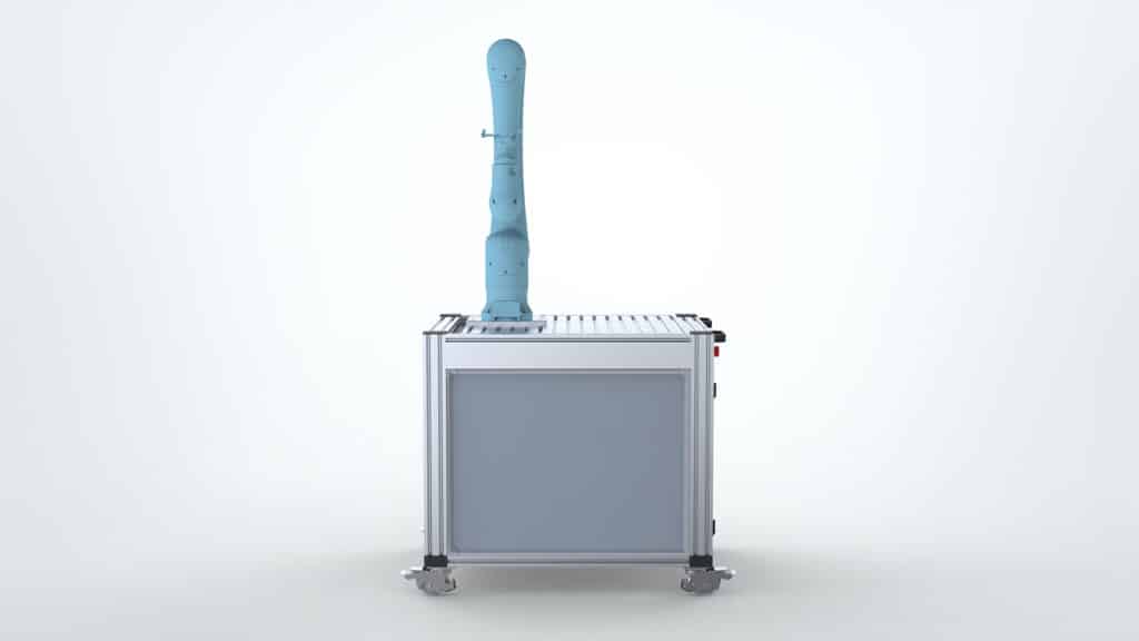 La station cobot permet de s’aborder rapidement la commande de machine, l’assemblage, des applications de collage ou des tâches simples de pick & ; place. Des composants spécifiques à l’application, tels que des porte-pièces, des capteurs ou des palpeurs, peuvent être installés sans problème sur les rainures des profilés. Grâce à l’espace de rangement pour les éléments de commande et aux roulettes avec pieds de blocage, le châssis garantit une mobilité maximale pour des possibilités d’utilisation sur mesure.
